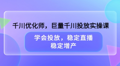 千川优化师,巨量千川投放实操课,学会投放,稳定直播,稳定增产