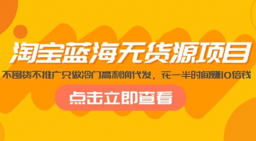 淘宝蓝海无货源项目,不囤货不推广只做冷门高利润代发,花一半时间赚10倍钱