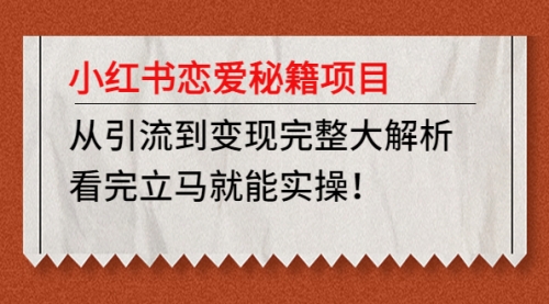 小红书恋爱秘籍项目,从引流到变现完整大解析看完立马能实操【教程+资料】